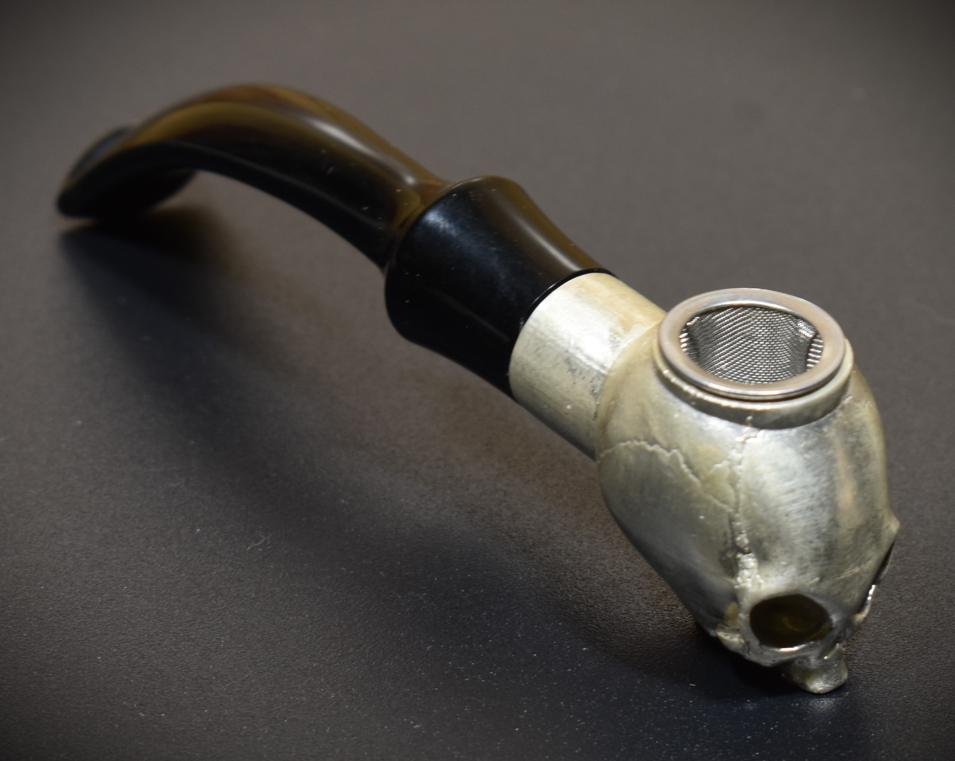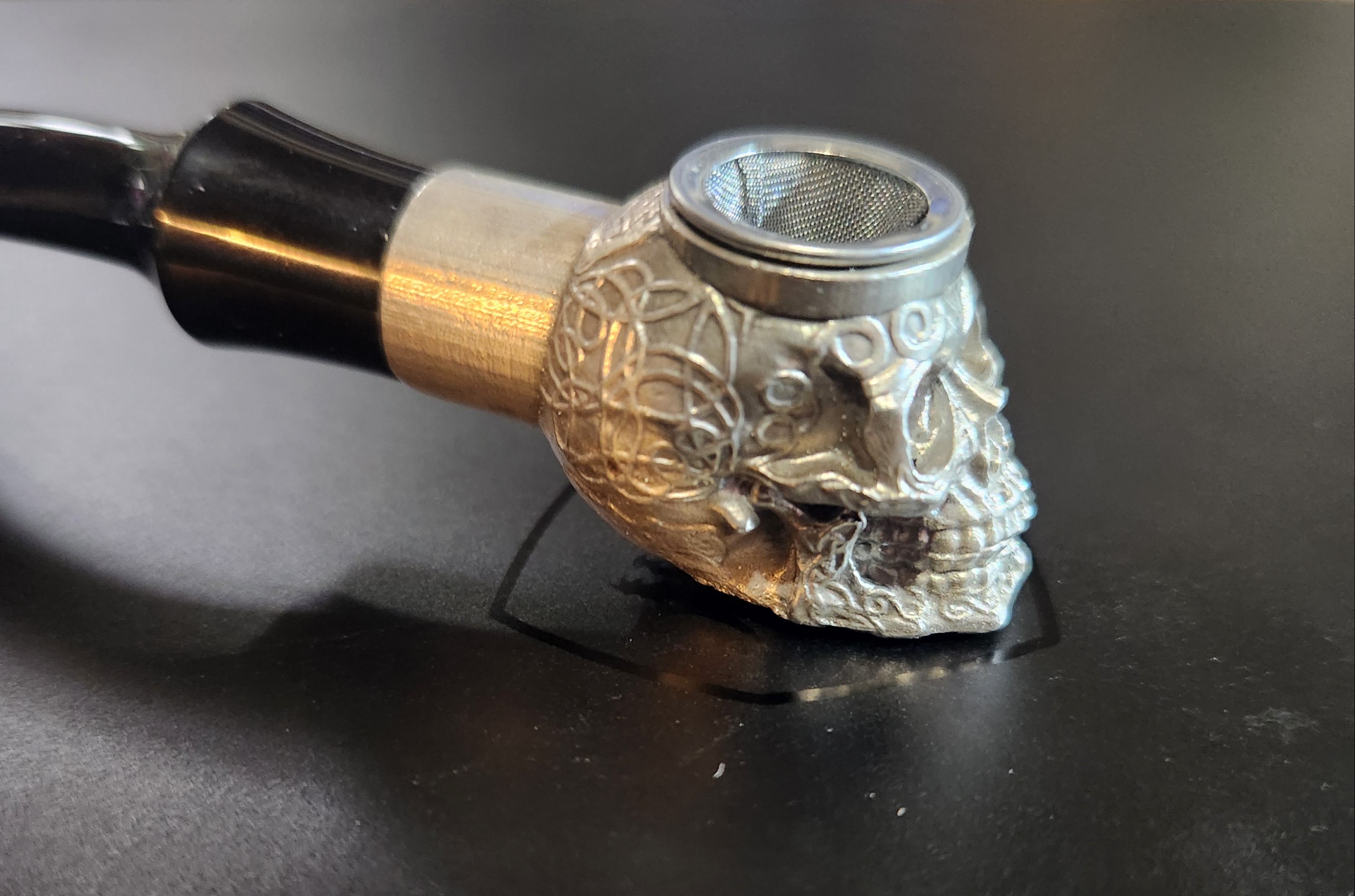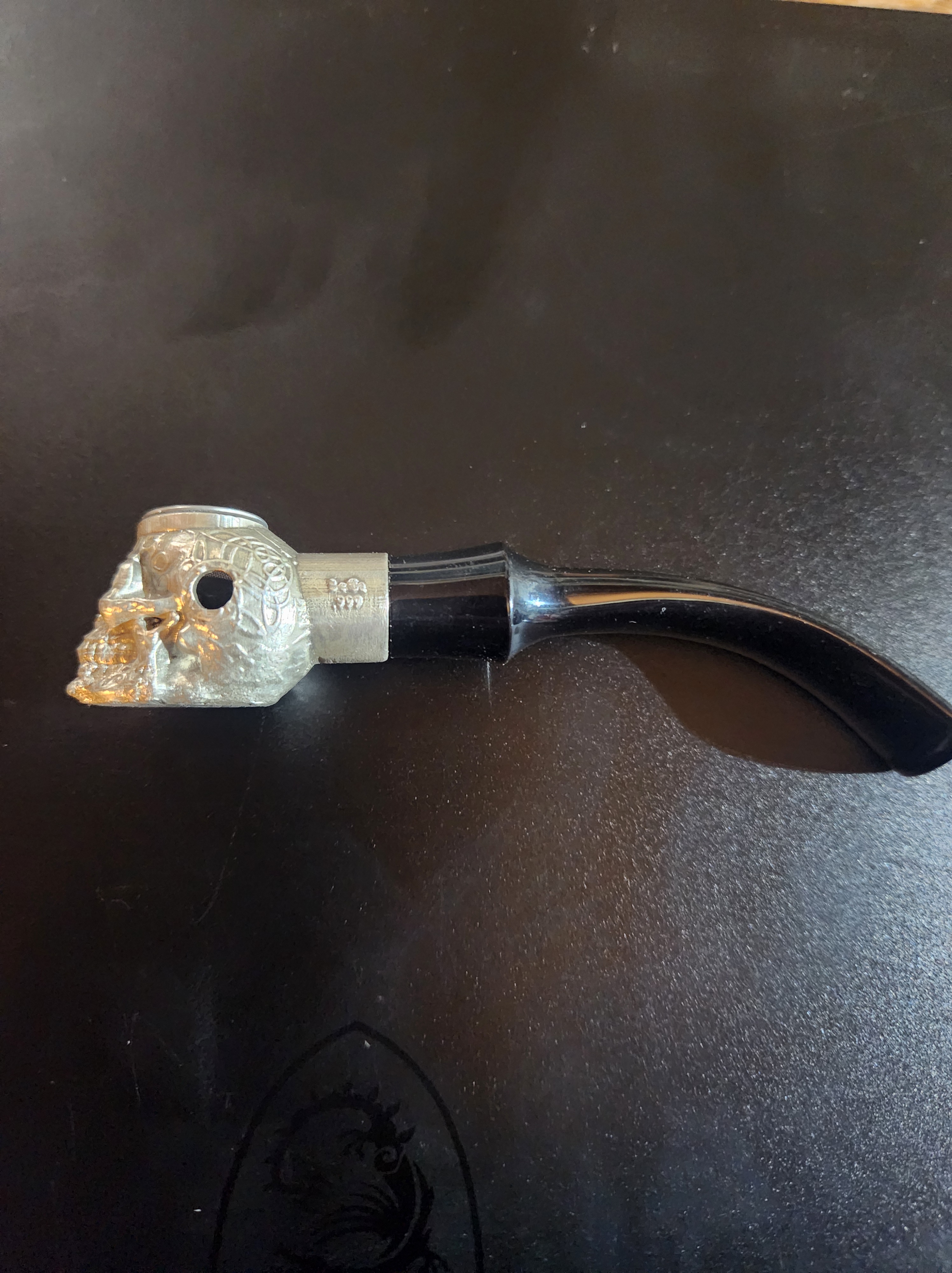 This Sugar Skull pipe was hand made with 1.30ozt pure .999 silver. Polished Acrylic Stem Full refund if not completely satisfied.